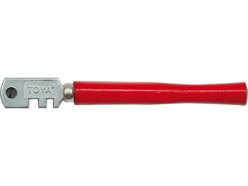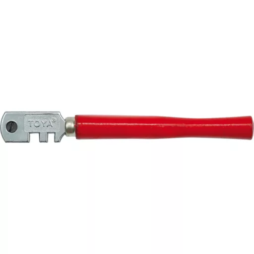 Vorel brand glass cutting knife equipped with a movable head with six cutting wheels. The product has a wooden handle and a head equipped with two notches that allow you to grip the glass when breaking.