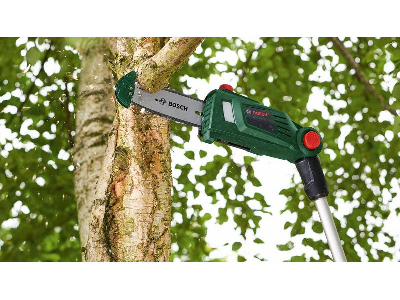 Einfaches Beschneiden von Baumästen vom Boden aus, ohne Leiter. Der UniversalChainPole 18 ermöglicht einfaches Beschneiden an sonst unerreichbaren Stellen dank des Teleskopgriffs und des schwenkbaren Kopfes. Das ausgewogene, leichte, ergonomische Design minimiert die Belastung für Arme und Schultern, während der Messerschutz und der Stachelstoßdämpfer maximale Kontrolle beim Schneiden und Untermähen bieten. Die automatische Kettenschmierung und der Ölstandsanzeiger gewährleisten einen reibungslosen Betrieb des Werkzeugs für gleichmäßige Ergebnisse. Der Akku-betriebene UniversalChainPole 18 für kontinuierliches Schneiden ohne Beschädigung der Bäume. Dieses Werkzeug ist Teil des POWER FOR ALL ALLIANCE Systems. Mit nur einem Akku können viele Werkzeuge verschiedener Marken betrieben werden.