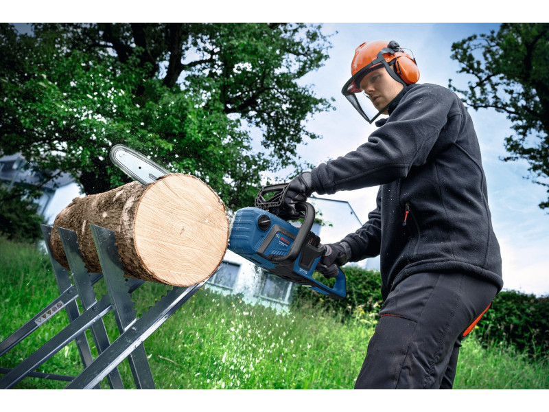 A 40 cm-es láncvezető gerendák, faanyagok és vastag ágak esetén is folyamatos vágást biztosít, így tökéletes szerszám számos feladathoz. Egyszerűen indítható, kis karbantartási igényű és hosszú élettartamú láncfűrész. Kompatibilis a Bosch Professzionális 18V rendszerrel és az AMPShare többmárkás akkumulátor-rendszerével is.