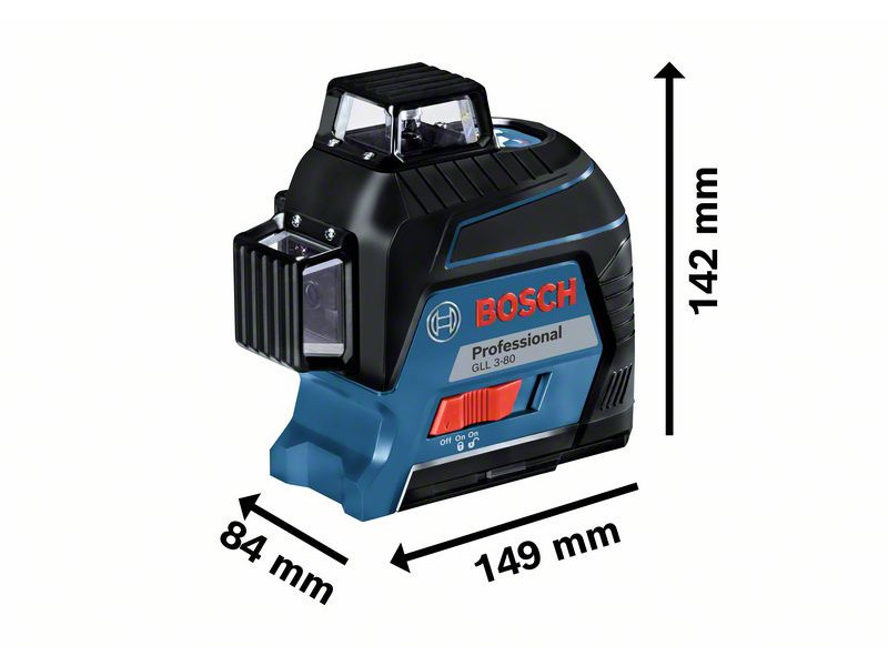 Der GLL 3-80 Professional ist hervorragend für schnelles Selbstnivellieren auf unebenen Oberflächen (+/- 4°) in weniger als 4 Sekunden, mit hervorragender (± 0,3 mm/m*/**) Genauigkeit. Bei Verwendung der optionalen LR 6 oder LR 7 Professional Empfangseinheit beträgt die Arbeitsbereich bis zu 120 m. Kompakter, einfach zu bedienender und äußerst robuster (IP54) Linienlaser.