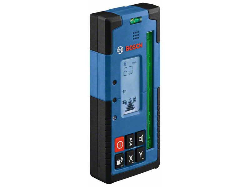 Der kompakte und robuste LR 65 G Professional ist ein hochwertiger Laserempfänger, der grüne Laserstrahlen schnell erkennt. Sein langer (125 mm) Empfangsschlitz und sein beidseitiges, hintergrundbeleuchtetes Display mit Millimeter-Offset-Funktion ermöglichen effizientes Arbeiten und schnelle Lasersichtung. Die langlebige Gummiknöpfe, der IP67-Schutz gegen Staub und Wasser sowie der sichere, weiche Griff machen es zum perfekten Werkzeug für anspruchsvolle Aufgaben. Bluetooth®-Kommunikation mit dem GRL 650 CHVG Professional Rotationslaser: zusätzliche Funktionen wie benutzerdefinierte Kalibrierung (uCAL), sowie doppelte CenterFind und CenterLock.