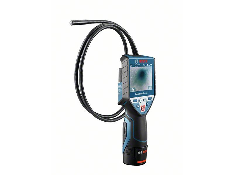 Die GIC 120 C Professional Inspektionskamera ist ideal für die Untersuchung von schwer zugänglichen Stellen und die Dokumentation der Ergebnisse. Die Up is Up™ Funktion dreht und justiert das Bild auf dem großen Display für eine optimale räumliche Orientierung. Für eine qualitativ hochwertige Dokumentation und schnelle Speicherung können Bilder und Videos direkt über ein Micro-USB-Kabel übertragen werden. Dank der Technologie, die den Einsatz von zwei Arten von Stromquellen ermöglicht, können sowohl 12-V-Lithium-Ionen-Akkus als auch herkömmliche Alkalibatterien verwendet werden.