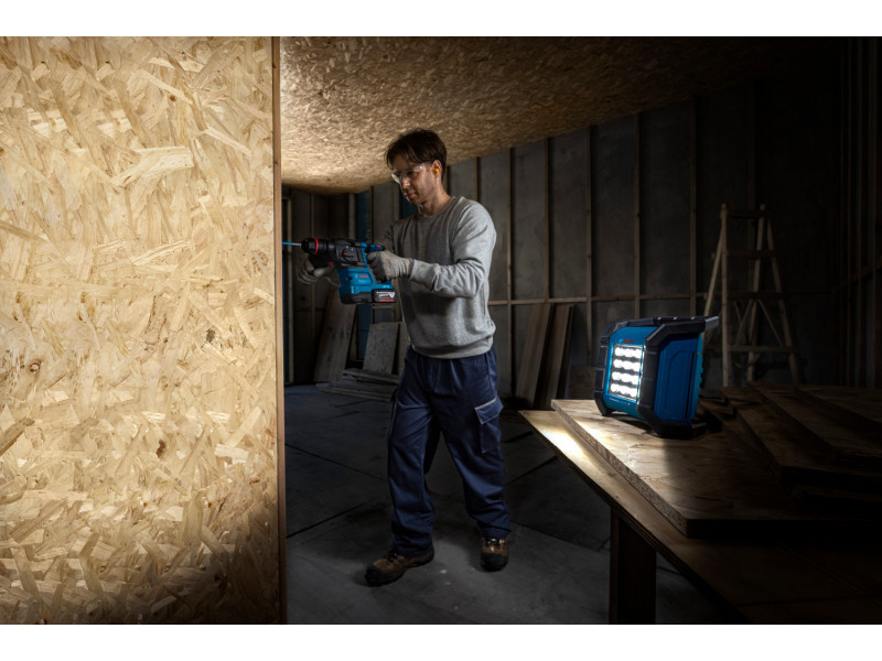 Die GLI18V-1500 Hochleistungstaschenlampe mit 1500 Lumen Lichtstrom. Robuste Taschenlampe mit IP64-Schutz gegen Staub und Wasser. Kann schnell und einfach auf einem Stativ, einer Werkbank oder jeder anderen Oberfläche platziert werden - für freihändige Beleuchtung in festen Positionen. Zwei Helligkeitsstufen stehen zur Auswahl: 1500 lm und 800 lm.