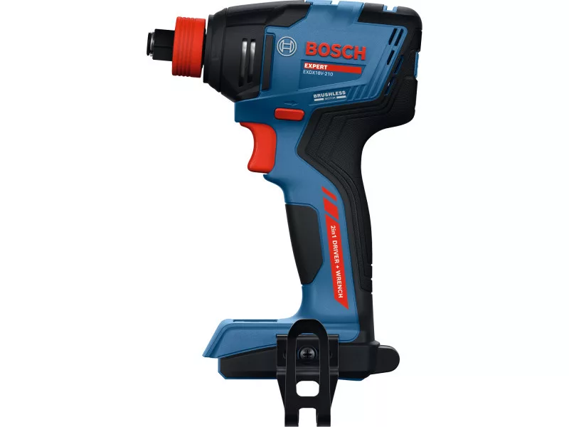 Az EXPERT EXDX18V-210 sokoldalú behajtó/csavarozón gyorsan és egyszerűen cserélhetők a 1/4"-os hatlapú és a 1/2"-os négyszög tartozékok. Nagy teljesítményű, szénkefe nélküli motor 3400 ford./perc maximális fordulatszámmal és 210 Nm meghúzási nyomatékkal, valamint öt sebességfokozat a gyors munkavégzésért optimális irányíthatóság mellett. Négy beállítható csavarozási módnak köszönhetően elkerülhető a csavarfejek törése és a munkadarabok sérülése az óramutató járásával megegyező irányba történő forgáskor, valamint az anyák és csavarok leesése az óramutató járásával ellentétes irányba történő forgáskor. A beépített LED-lámpa fényt biztosít a sötét munkaterületeken.