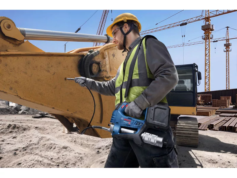 • A Bosch GFP 18V-10 zsírzópisztoly megkönnyíti a kenési feladatok elvégzését. A praktikus pumpálás üzemmóddal megadható a pumpálások pontos száma és a kívánt adagolás. Gyors, hatékony és egyszerű zsírzás 2 sebességfokozattal az optimális nyomás és áramlási sebesség érdekében. Hosszú tömlő és ferde csatlakozó a nehezen elérhető alkatrészek kényelmes kenéséhez. Bármilyen típusú patronnal használható – a GFP 18V-10 az összes szabványos patronrendszerrel kompatibilis.