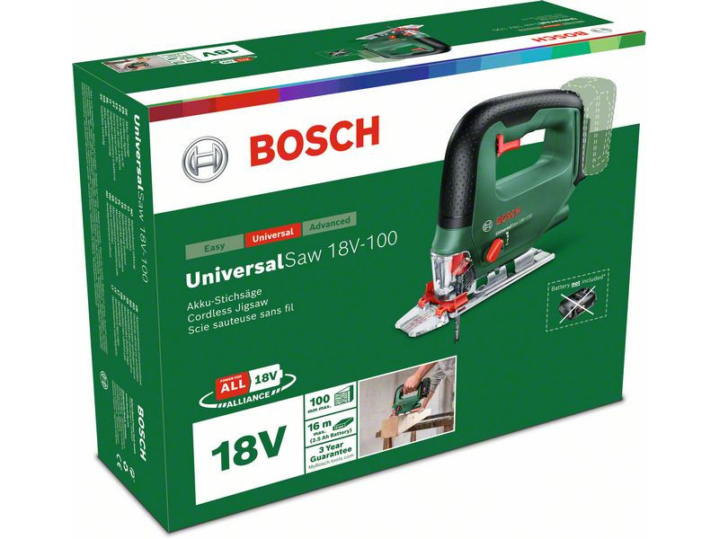 Für Heimwerkerarbeiten, egal ob es sich um das Sägen von Parkett oder das Erstellen von Regalen handelt, ist das UniversalSaw 18V-100 Akkugerät perfekt. Es bietet eine Schnitttiefe von 100 mm in Holz, eine maximale Schnitttiefe von 8 mm in Stahl und ist mit einer breiten Auswahl an nützlichem Zubehör erhältlich. Dank des 4-stufigen Pendelmechanismus bietet diese Stichsäge eine erstklassige, schnelle Arbeit, die das Sägeblatt auch durch das härteste Material schiebt. Sowohl erfahrene Heimwerker als auch Anfänger werden die sanfte Anlauf- und Leistungseinstellungsfunktion des Geschwindigkeitsregelknopfes sowie das SDS-System für einen bequemen und einfachen Sägeblattwechsel zu schätzen wissen. Dieses Werkzeug ist Teil des POWER FOR ALL ALLIANCE Systems. Ein einziger Akku kann eine Vielzahl von Werkzeugen verschiedener Marken betreiben.
