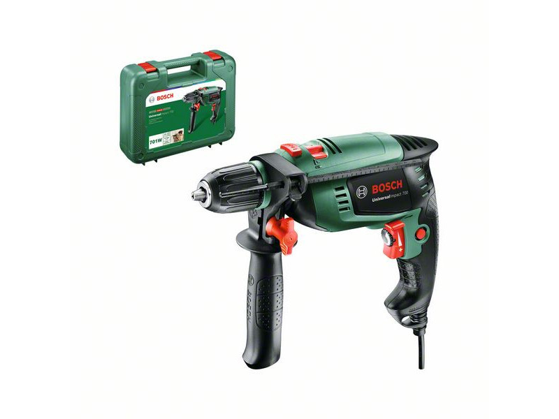 Der vielseitige UniversalImpact 700 ist der perfekte Schlagbohrer für jede Aufgabe und jedes Projekt, unabhängig vom Material. Press&Lock Schnellspannbohrfutter für den schnellen Bitwechsel mit nur einem Tastendruck. Darüber hinaus können Sie mit der Bosch Speed Preselection die Bohrgeschwindigkeit präzise einstellen, sodass das Werkzeug bei jedem Material mit der richtigen Geschwindigkeit arbeitet. Durch seine ergonomische Gestaltung ist er einfach zu bedienen, kompakt und besonders leicht (nur 1,7 kg) - für bequemes Arbeiten. Er kann in Mauerwerk bis zu einer Tiefe von 14 mm und in Holz bis zu 30 mm bohren.