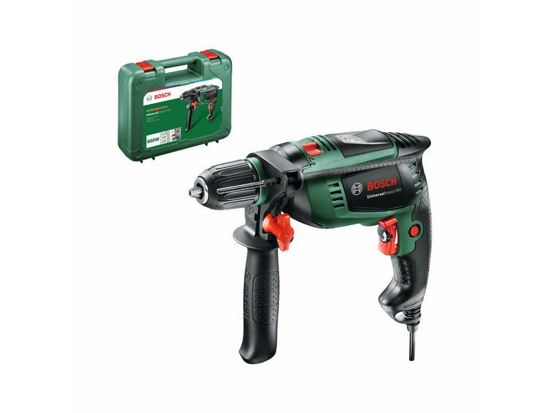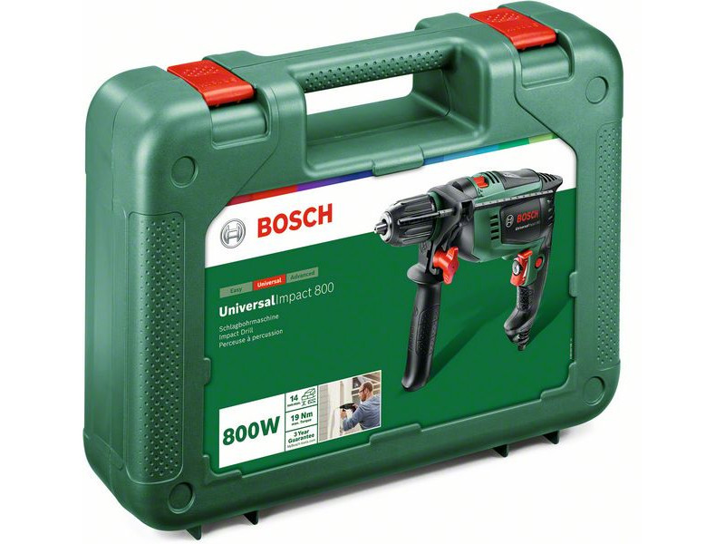 Der UniversalImpact 800 ist die perfekte Wahl für die schnelle und sichere Ausführung von umfangreichen Aufgaben. Die KickBack Control-Funktion schaltet das Werkzeug bei Blockierungen komplett ab. Das Autolock Schnellspannbohrfutter ermöglicht einen schnellen, einhändigen Bitwechsel. Mit der Bosch Speed Preselection kann die Bohrgeschwindigkeit genau eingestellt werden, sodass das Werkzeug mit der materialgerechten Geschwindigkeit arbeitet, während die Constant Speed-Funktion die Geschwindigkeit unabhängig von der Belastung für ein gleichmäßiges Ergebnis automatisch reguliert. Der leistungsstarke 800-Watt-Motor sorgt für schnelle Arbeitsleistung in Mauerwerk, Holz, Weichbeton und Metall - mit Bohrtiefen von bis zu 14 mm in Mauerwerk und bis zu 30 mm in Holz.