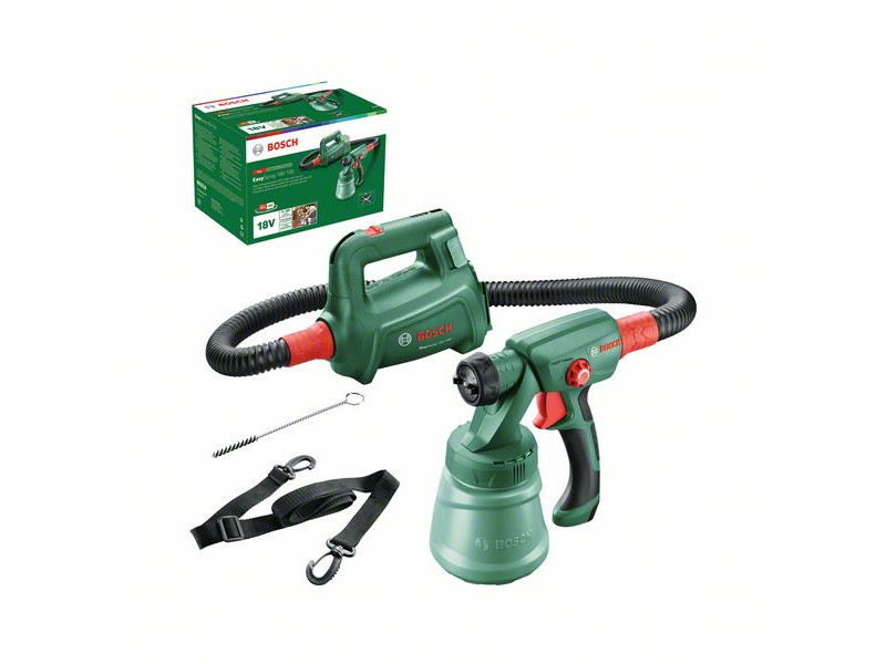 Für kleinere und mittlere Heimwerkerprojekte liefert das Bosch EasySpray 18V-100 Akku-Sprühgerät ausgezeichnete Ergebnisse bei Lackier- und Veredelungsprojekten. Dank seiner Leichtigkeit und dem leistungsstarken 18 V Li-Ionen-Akku ist dieses Sprühgerät für schnelle Arbeit und maximale Mobilität konzipiert.