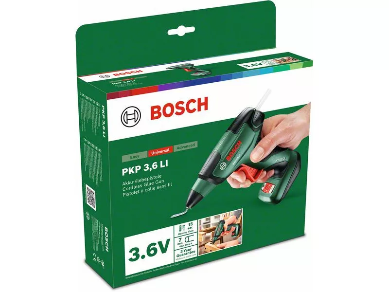 Der Akku-Klebepistole ist dank seines kompakten Designs hervorragend zu handhaben. Die Lithium-Ionen-Akkutechnologie eliminiert den Memory-Effekt und die Selbstentladung, sodass der Akku im Ruhezustand nicht entladen wird. Mit einer Aufheizzeit von nur 15 Sekunden können Aufgaben schnell und ohne Wartezeit begonnen werden. Der PKP 3,6 LI kann praktisch für jedes Material verwendet werden, wie Papier, Karton, Textilien, Leder, Kunststoff, Holz, Metall, Kork oder Stein. So können kleinere Reparaturen und Dekorationen unglaublich einfach durchgeführt werden.