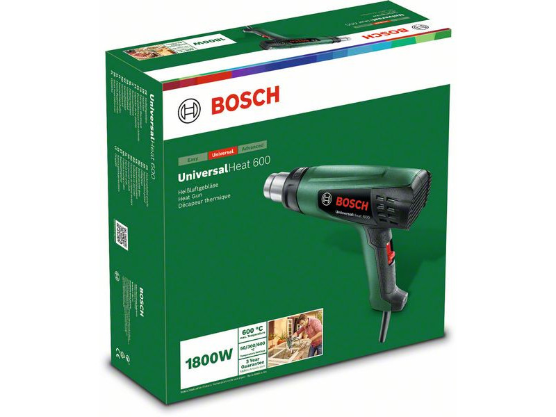 Vielseitiger Heißluftföhn für viele Aufgaben. Dank des abnehmbaren Schutzschilds eignet er sich auch für Arbeiten an engen Stellen. Das Heizelement des UniversalHeat 600 bietet eine schnelle Erhitzung und gleichmäßige Wärmeverteilung für hervorragende Leistung. Zusätzlich können mit dem dreistufigen Ein- und Ausschalter verschiedene Temperaturen und Luftströme eingestellt werden. Dank der verschiedenen Düsen kann der Heißluftföhn für viele Aufgaben verwendet werden, wie zum Beispiel das Entfernen von Farbe, das Auftauen von Wasserrohren, das Unkrautbrennen, das Trocknen von Dichtungen, das Schrumpfen von Kabeln, kreative Projekte.