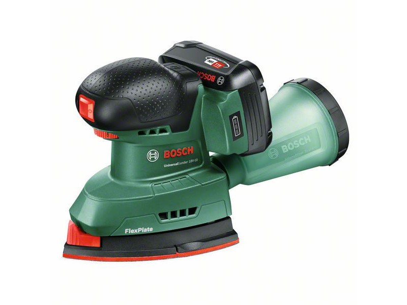 Der akkubetriebene UniversalSander 18V-10 hat eine Bügeleisenförmige Sohle für das Schleifen an engen Stellen, Ecken und Kanten, während die rechteckige Sohle für mittlere und große, flache Oberflächen geeignet ist. Mit der elektronischen Drehzahlvorwahl kann die ideale Einstellung für jede Aufgabe und jedes Material gewählt werden. Das Zubehör kann schnell mit dem SDS-System gewechselt werden. Dieser Schleifer eignet sich ideal für das Schleifen von Holz, lackierten und bemalten Oberflächen, wie zum Beispiel Möbel, Türen, Rahmen usw. Die leicht abnehmbare Mikrofilter-Staubfangbox reduziert den Staub und sorgt so für einen sauberen Arbeitsbereich. Die integrierte Bosch Syneon-Technologie sorgt für eine optimale Leistung bei maximaler Laufzeit. Dieses Werkzeug ist Teil des 18V POWER FOR ALL ALLIANCE Systems. Ein Akku für alle 18V POWER FOR ALL Werkzeuge.