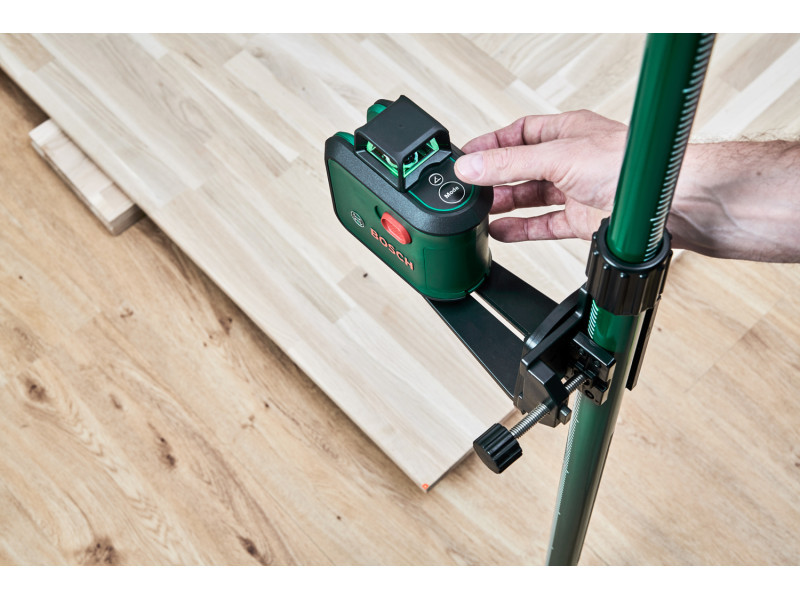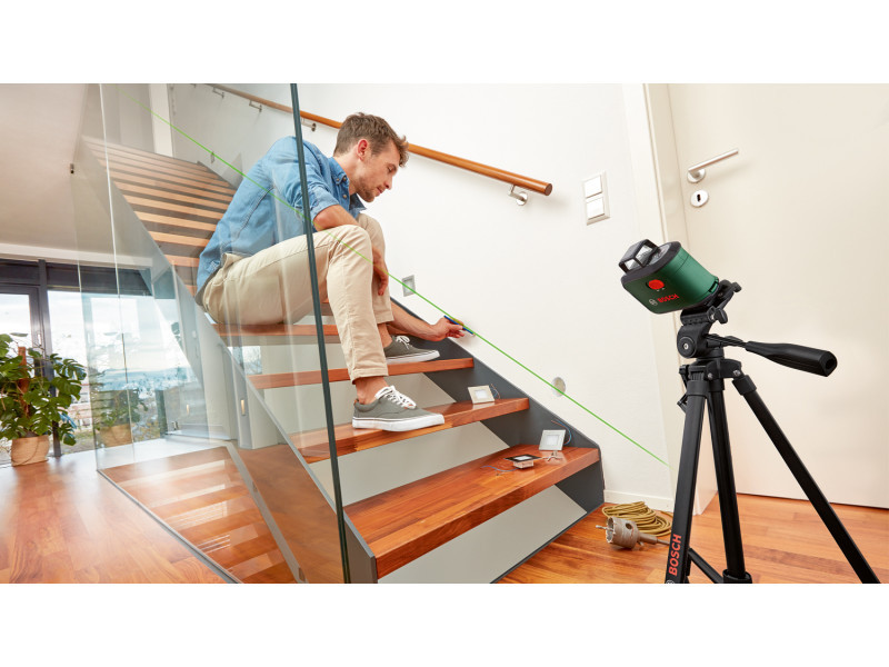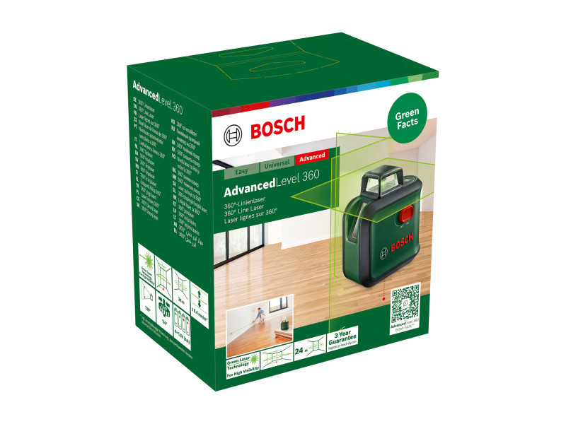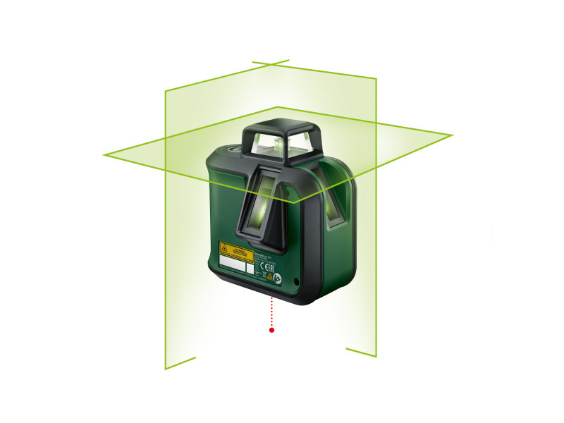 Für einfache und schnelle Ausrichtung, Winkelausrichtung und Übertragung vereint der AdvancedLevel 360 alle notwendigen Referenzpunkte in einem einzigen Werkzeug. Präzise Ausrichtung mit der 360° horizontalen Laserlinie und der vertikalen Linie. Darüber hinaus ermöglicht die zweite, 90° vertikale Laserlinie eine einfache und genaue Winkelausrichtung, während der nach unten weisende Lotpunkt mit zusätzlichem Deckenkreuz eine schnelle Übertragung ermöglicht. Mit der grünen Lasertechnologie ist die Sichtbarkeit bis zu viermal besser als bei roten Laserlinien, auch im Hellen. Montage von abgehängten Decken, Positionieren von Möbeln auf gleicher Höhe, Montage von Trockenbau oder Duschkabinen, Einbau von Lampen - die Funktionen des 360° Linienlasers liefern optimale Ergebnisse, auch auf leicht unebenen Oberflächen.