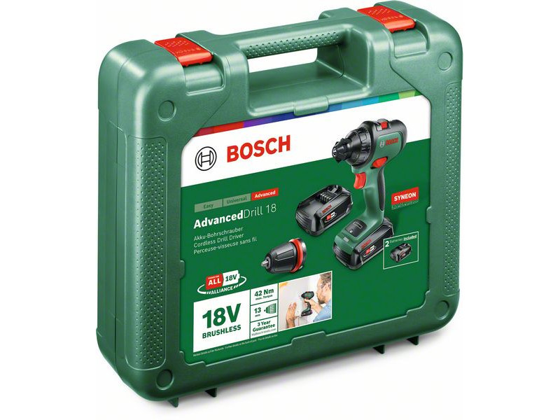 Äußerst benutzerfreundlicher und flexibler Akku-Bohrschrauber. Die Auswahl des gewünschten Modus ermöglicht eine einfache und automatische Einstellung der geeigneten Stufe für Schraub- und Bohrarbeiten. Die Drehrichtung kann mit einem Klick über das innovative elektronische Schaltersystem mit LED-Anzeige geändert werden. Der bürstenlose Motor bietet eine leistungsstarke, kompakte und langlebige Lösung. Magnetischer Bit für Schraubarbeiten und 13-mm-Bohrfutter für Bohrarbeiten – für einen noch einfacheren Wechsel zwischen den Aufgaben. Mit dem AdvancedDrill 18 können vielfältige Aufgaben in Holz, Kunststoff und Metall ausgeführt werden. Dieses Werkzeug ist Teil des POWER FOR ALL ALLIANCE Systems. Ein einziger Akku kann eine Vielzahl von Werkzeugen verschiedener Marken betreiben.