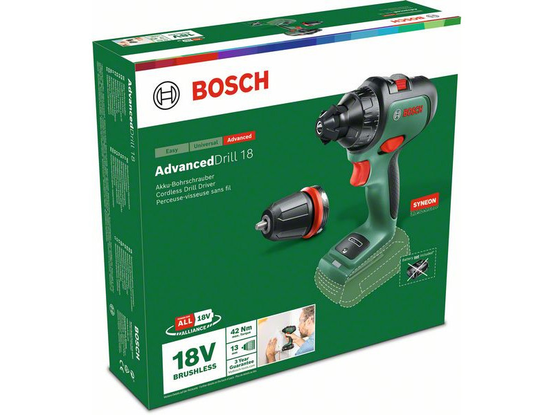 Äußerst benutzerfreundlicher und außergewöhnlich flexibler Akkuschrauber. Die Auswahl des gewünschten Modus ermöglicht eine einfache und automatische Einstellung des richtigen Gangs für Schraub- und Bohrarbeiten. Die Drehrichtung kann mit einem Klick über das innovative elektronische Schaltersystem mit LED-Anzeige geändert werden. Der bürstenlose Motor bietet eine kraftvolle, kompakte und langlebige Lösung. Magnetischer Stecker zum Schrauben und 13-mm-Bohrfutter zum Bohren - so ist der Wechsel zwischen den Aufgaben noch einfacher. Mit dem AdvancedDrill 18 können vielfältige Aufgaben in Holz, Kunststoff und Metall ausgeführt werden. Dieses Werkzeug ist Teil des POWER FOR ALL ALLIANCE Systems. Mit einem einzigen Akku können zahlreiche Werkzeuge verschiedener Marken betrieben werden.