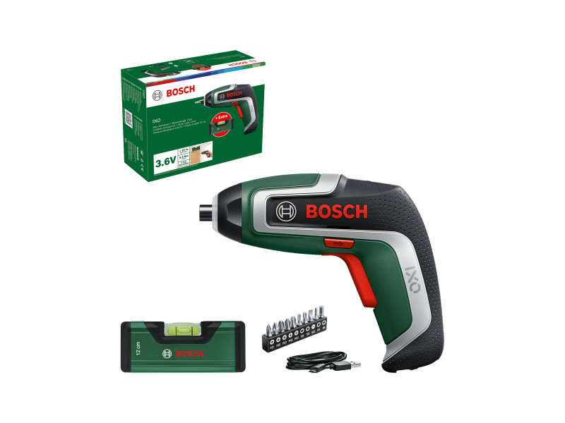 BOSCH Akkuschrauber IXO 7 + 12 cm Wasserwaage