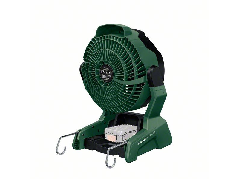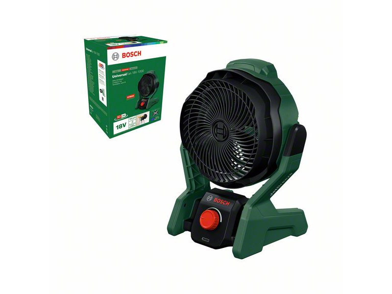 Der brandneue, kabellose Bosch UniversalFan 18V-1000 wurde speziell für die speziellen Anforderungen von Heimwerkern entwickelt. Er ist leicht, kompakt und robust, während die innovative Bosch JetBreeze Airflow Technologie einen kraftvollen, konzentrierten Luftstrom erzeugt, mit exzellenter Laufzeit und angenehm leisem Betrieb. Die Ventilatorgeschwindigkeit kann stufenlos eingestellt werden und die Funktion "Konstante Leistung" hält die Leistung während der gesamten Akkulaufzeit konstant. Genießen Sie maximale Vielseitigkeit: Dank der verschiedenen Aufhänge- und Befestigungsmöglichkeiten, einschließlich Haken, Schlüssellochhalterung und Dreibeinstativ, kann der Ventilator fast überall verwendet werden. Die Luftstromrichtung kann durch Neigen des Ventilatorkopfes um 180° gesteuert werden, sodass der Luftstrom genau dorthin gelenkt werden kann, wo er benötigt wird. Effizient konzipiert: Der UniversalFan 18V-1000 wird in der EU hergestellt und besteht zu 90% aus recycelten Materialien. Die integrierte Bosch Syneon Elektronik schützt das Werkzeug und den Akku. Dieses Werkzeug ist Teil des POWER FOR ALL ALLIANCE Systems. Mit einer einzigen Batterie können zahlreiche Werkzeuge verschiedener Marken betrieben werden.