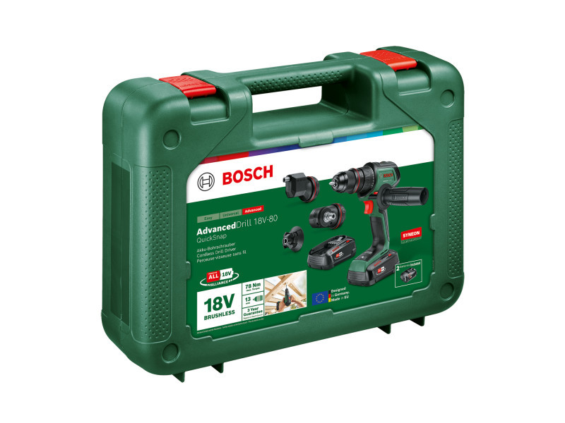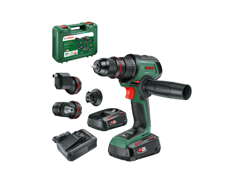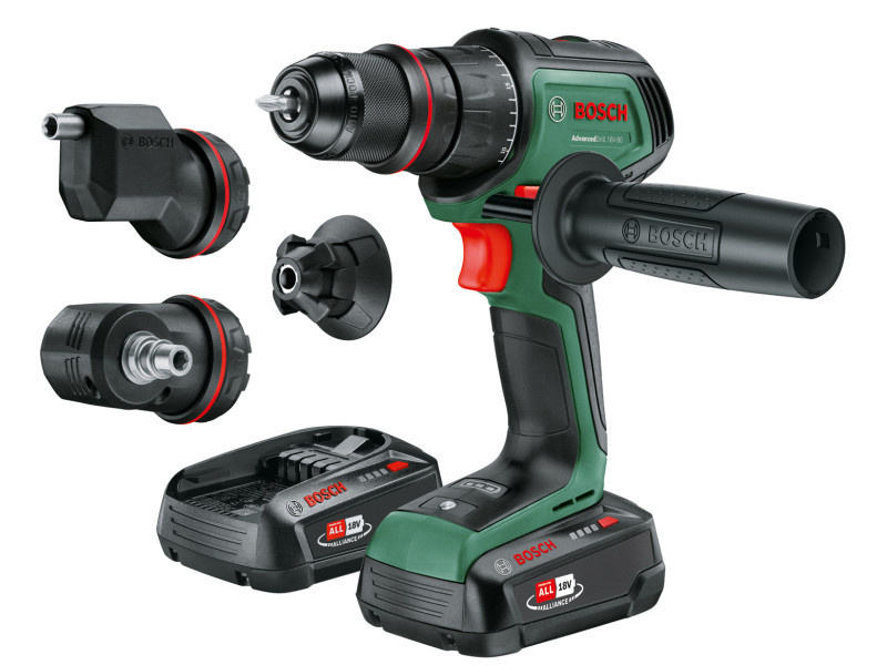 Lieferumfang: 2x PBA 18V 2.5Ah Akku, AL 18V-44 Ladegerät, Schrauberbit, austauschbares Metallspannfutter, Exzenteradapter, Magnetkappe, Zusatzgriff, Winkeladapter, Transportkoffer