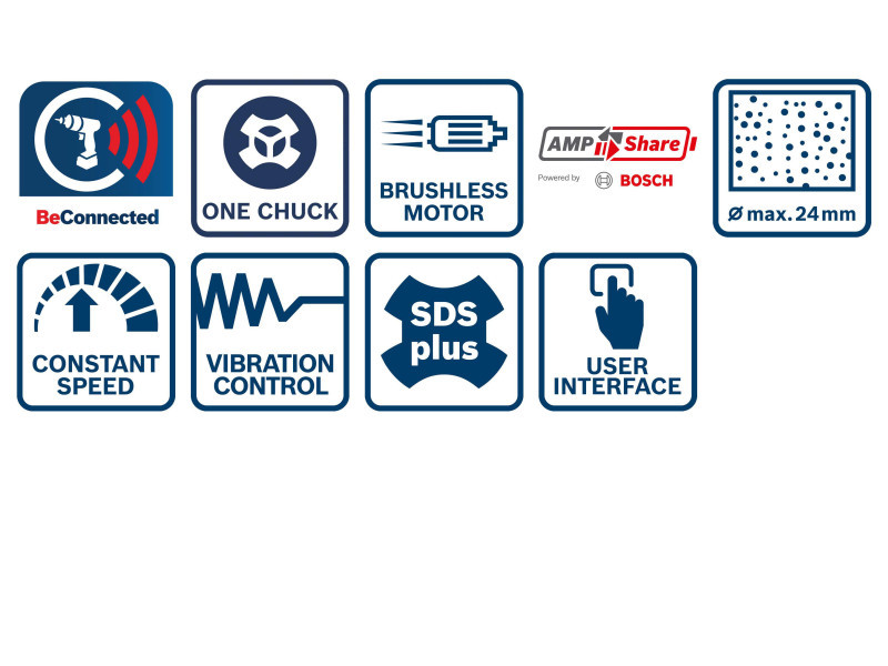 Egyetlen tokmány – Egyetlen tokmány, amelybe SDS plus és hengeres/hatszögletű fúrófejek is illeszthetők a legkülönbözőbb alkalmazásokhoz.