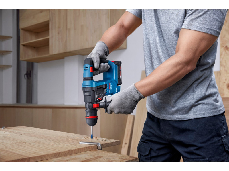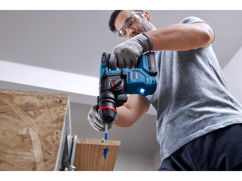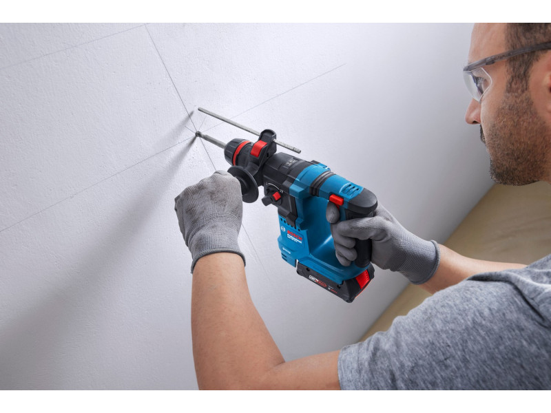 A Bosch GBH 18V-18 X Professional fúrókalapács ideális olyan szakemberek számára, mint a bútorszerelők, asztalosok, üvegesek és létesítménykezelők, akik betonnal, fával és fémmel dolgoznak. Ez a legkönnyebb Bosch Professional akkus fúrókalapács a 18 V-os kínálatban, amely egy mindössze 18 V-os, 2,0 Ah-s akkumulátorral is maximális teljesítményt nyújt.