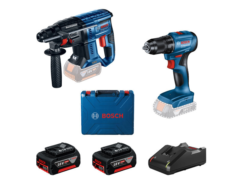 BOSCH Akku-Bohrschrauber GSR 185-LI + Akku-Bohrhammer GBH 180-LI (2 x 4,0 Ah Akkus + Ladegerät)