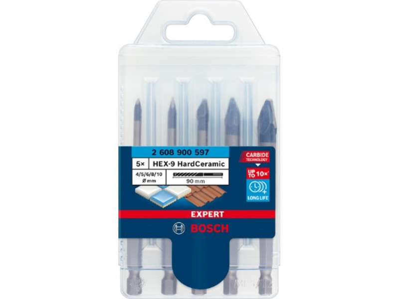 BOSCH EXPERT HEX-9 Fliesenbohrerschaft-Set 5-teilig (6 Stück) für Thekendisplay