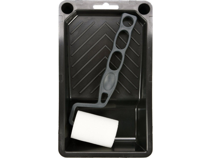 Lightweight painting roller with a length of 5 cm in a set with a plastic cuvette for conveniently scooping paint and squeezing out excess paint.