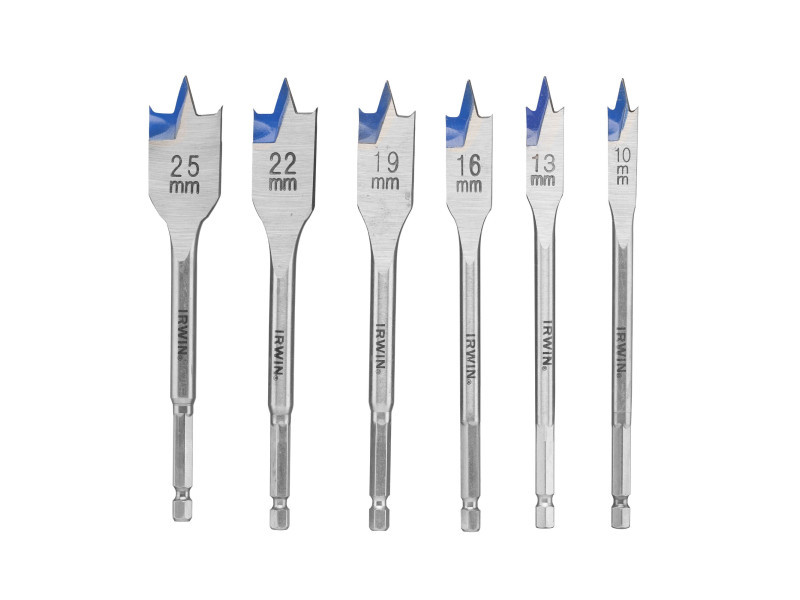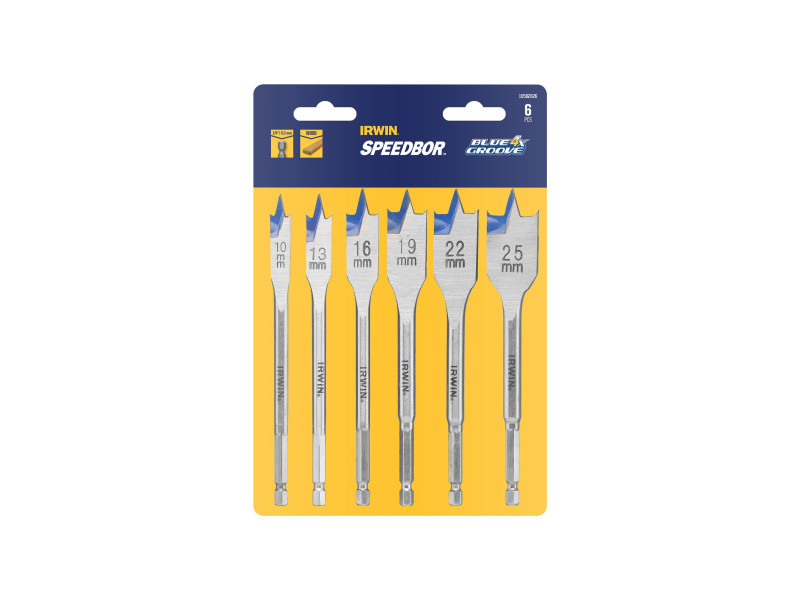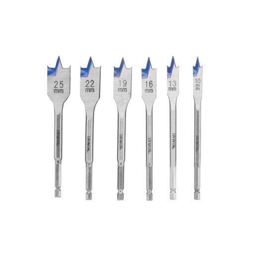IRWIN Flachholzbohrer-Set 6-teiliger Bit Blue Groove 4x (10-13-16-19-22-25 x 152 mm)