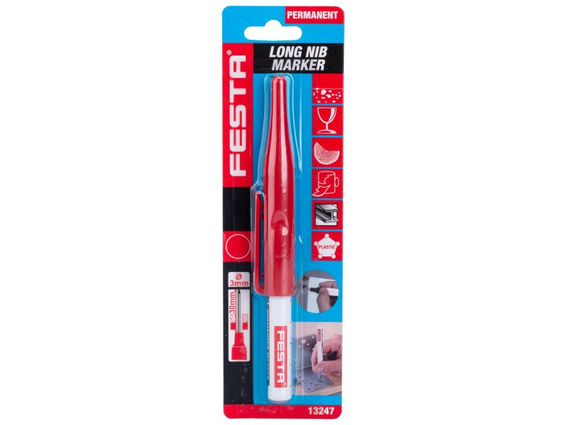 • csak a hegy átmérője 3 mm, lehetővé teszi a kis átmérők jelölését akár 30 mm vastag anyagokon keresztül is