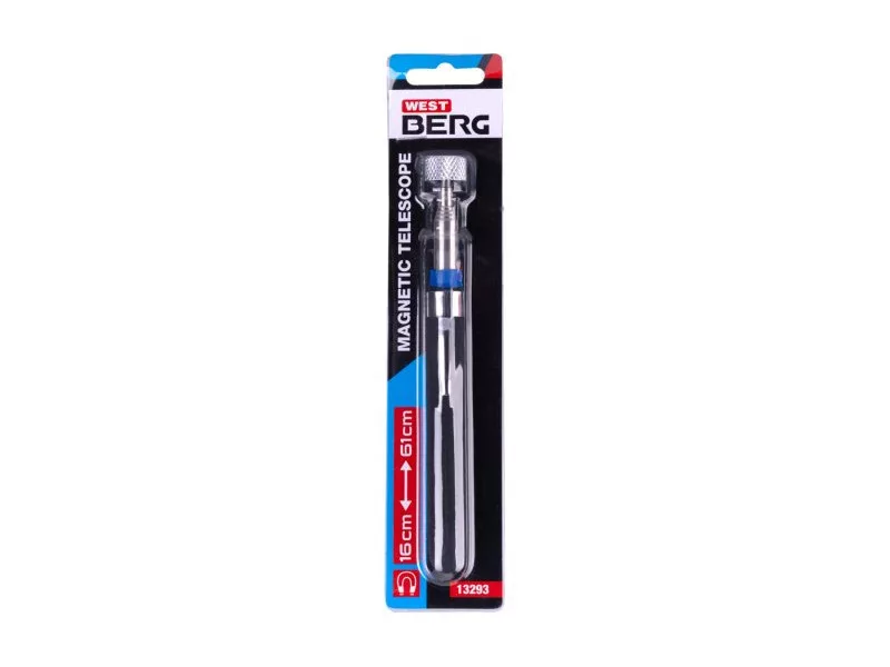Mágnes teleszkópos visszahúzható fogantyúval az elakadt csavarok stb. kihúzásához. Hosszabbítás 160 - 610 mm. Gumírozott fogantyú, ruhadarabhoz rögzíthető klip. Súlya 0,070 kg.