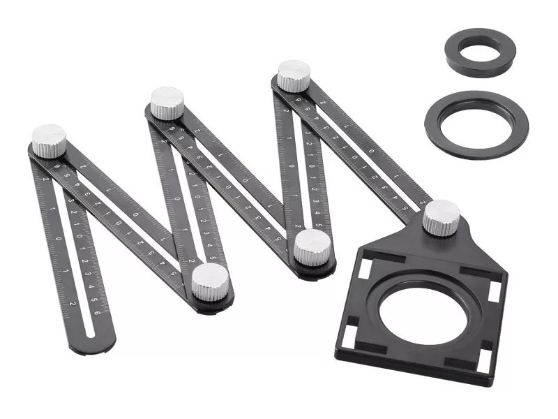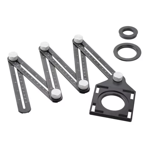 • 6 fém állítható kar centiméteres és hüvelykes skálákkal