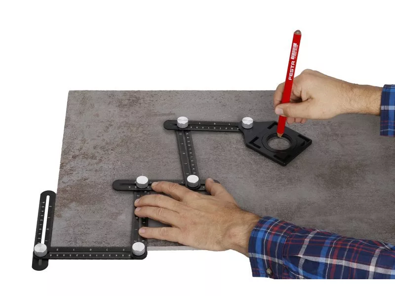 • speciális formák, szögek vagy nyílások jelölésére, áthelyezésére és létrehozására burkolók, padlómunkások és más szakmák számára nem csak az építőiparban