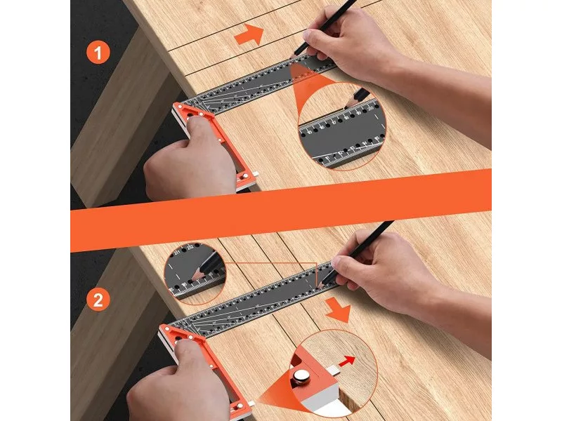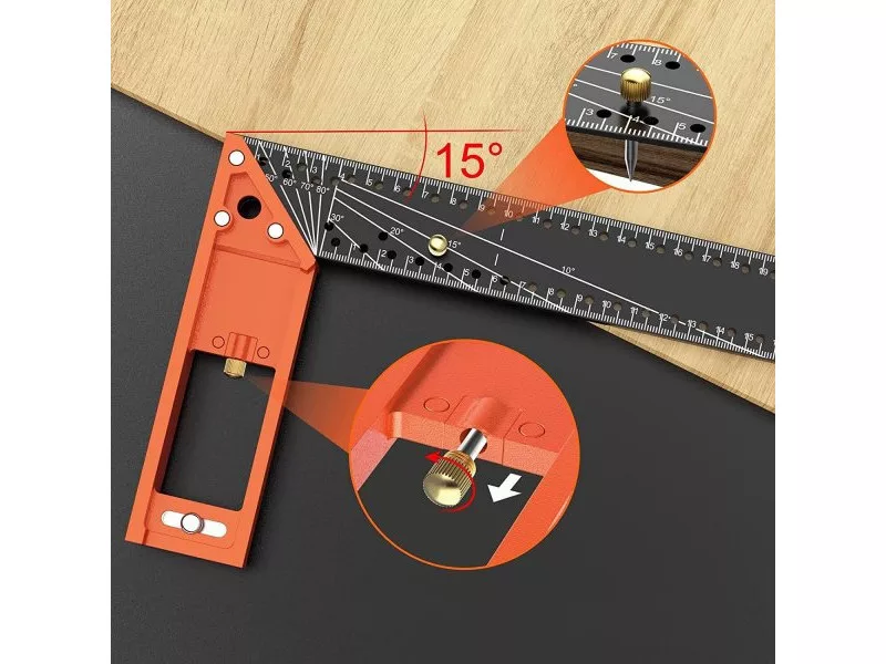 • mérlegek és speciális lyukak - jelzett szögek széles körű felhasználáshoz, célzáshoz, jelöléshez és fával, fémekkel, műanyagokkal stb. való megmunkáláshoz.