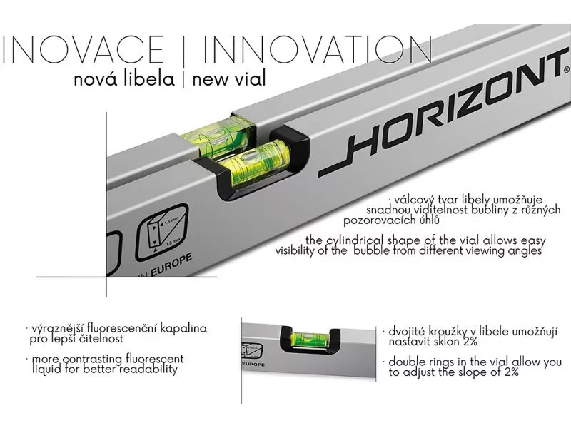 • Erneuerte horizontale Zylinderwaage - aus jedem Winkel gut sichtbar