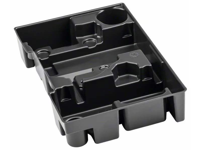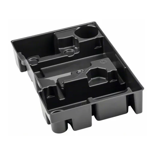 Im Bosch L-BOXX Speichersystem ermöglichen zwei Halbeinsätze eine flexible Anordnung eines 12 V Gerätes und dessen Zubehör, zwei 12 V Geräte oder verschiedene Zubehörteile.