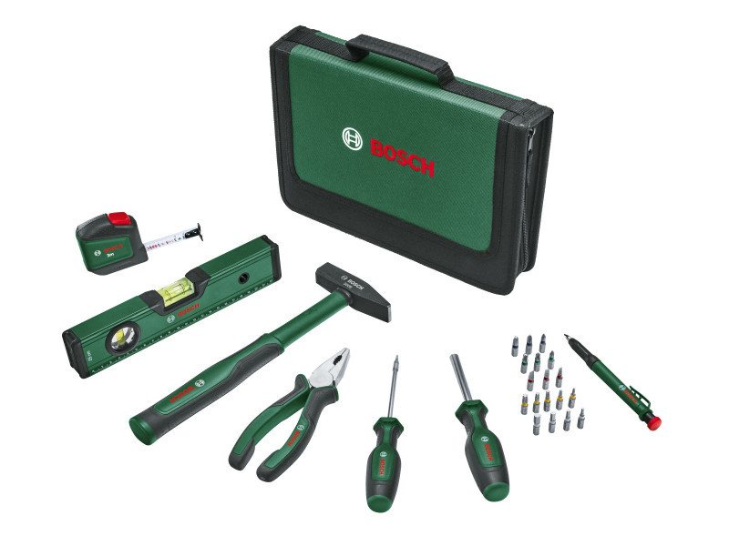 25-teiliges Set mit kombinierter Zange, Universal-Schraubendreher, Wasserwaage usw.