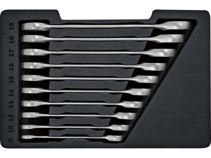 Das Set enthält: 8, 10, 12, 13, 14, 15, 16, 17, 18 und 19 mm.