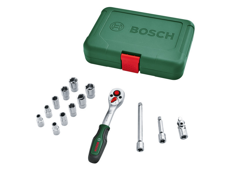 Großer Umfang: 1 x 1/4"-Ratsche und Adapter, plus 10 Steckschlüssel und 2 Verlängerungsstangen