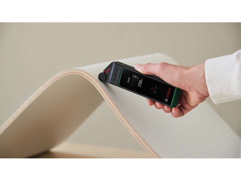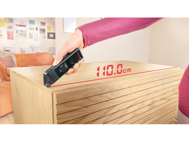 • Mit dem Radadapter können freistehende Objekte und gekrümmte oder unebene Oberflächen schnell und einfach gemessen werden. Besonders praktisch für die Bestimmung der Länge von Polsterstoffen oder die Berechnung der Kabellänge für Haushaltsgeräte und Heimkinosysteme.