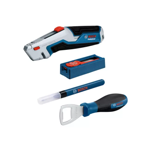 Limited Edition Set aus 3 Werkzeugen: 1 universelles Klappmesser, 1 Markierstift und 1 Flaschenöffner
