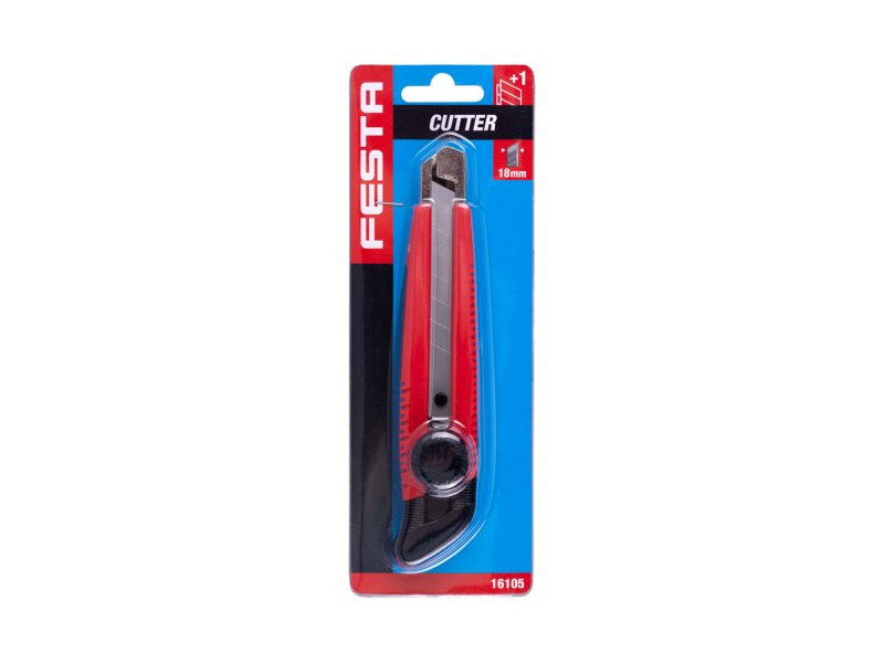 FESTA vágókés 18mm, minőségi anyagok, fém rúd, automata reteszelés biztosítékkal, akár 3 db tartalék penge helyezhető a késbe, buborékfólia.