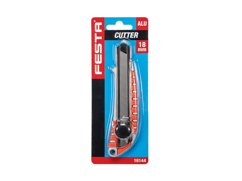 FESTA 18mm Schneidemesser, hochwertige Materialien, vollmetallischer Messerkörper, rutschfeste Kunststoffausbuchtungen, Metallstange, langlebige Schraubsicherung, bis zu 2 Ersatzklingen können im Messer untergebracht werden, Blisterverpackung.