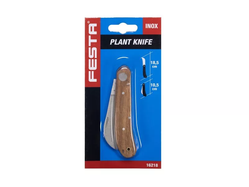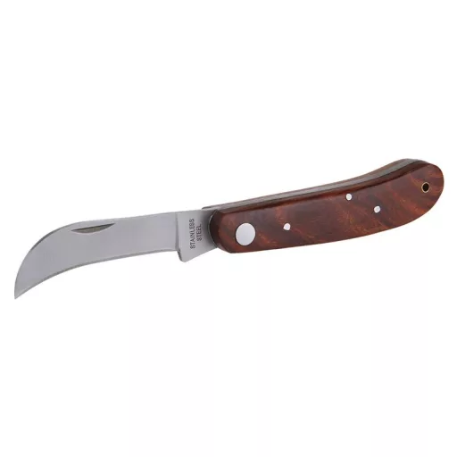 Oltó összecsukható kés, erős rozsdamentes penge, fa nyél kiváló minőségű szegecseléssel, fák és növények oltásához, vágásához és kezeléséhez, penge hossza 105 mm, bliszter.