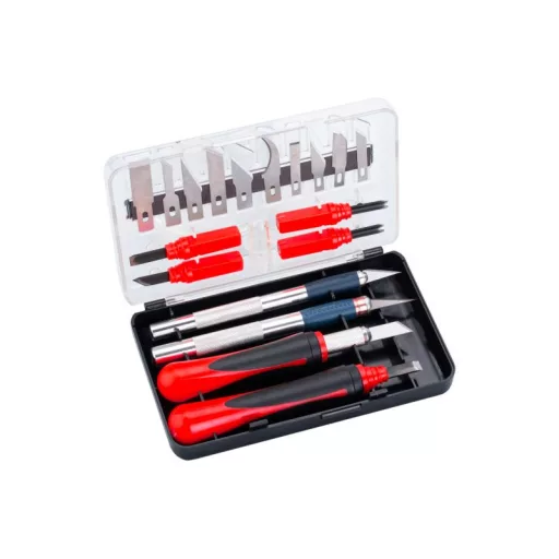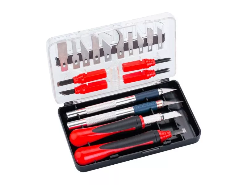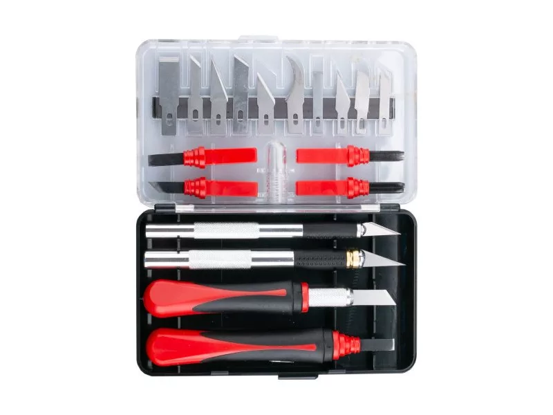 Többfunkciós szikekészlet - kések, ergonomikus fogantyúk gyorskioldássalpengefogás, széles felhasználási lehetőségek modellezésben, faragásban, iparban,műanyag doboz.