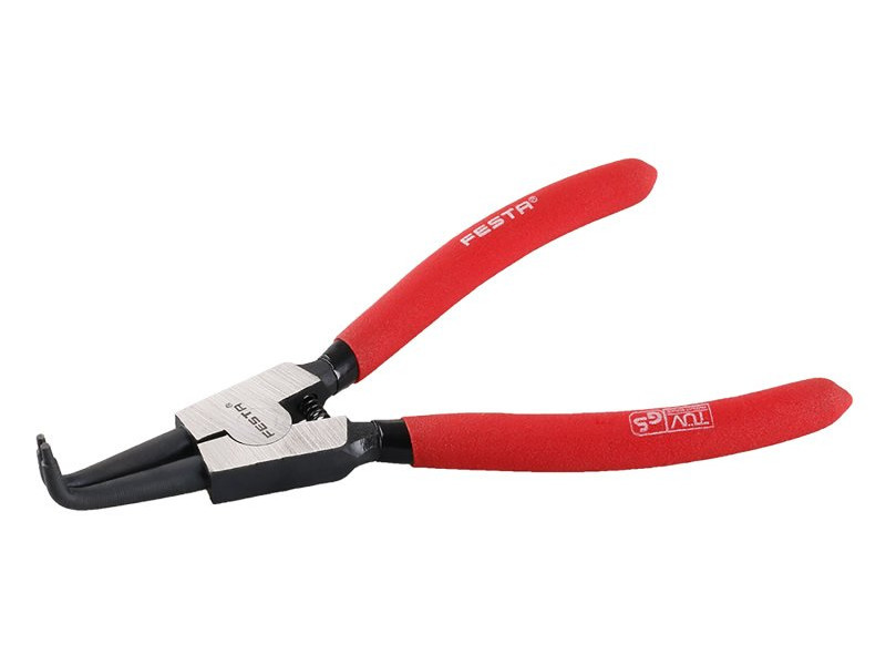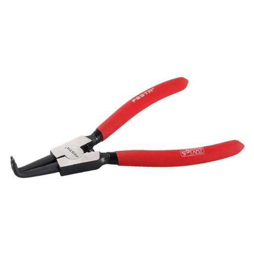 íves kivitelű külső biztosítógyűrűs fogó, biztosítógyűrűk be- és leszerelésére szolgál, csapágyak rögzítésére használhatjuk tengelyeken vagy furatokon.