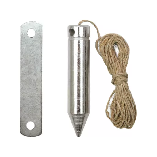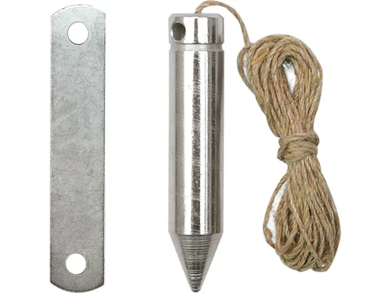 The traditional masonry division consists of a steel weights hung on a string and a steel handle equipped with mounting holes. It is used to properly designate vertical lines. Useful for renovation and construction works.