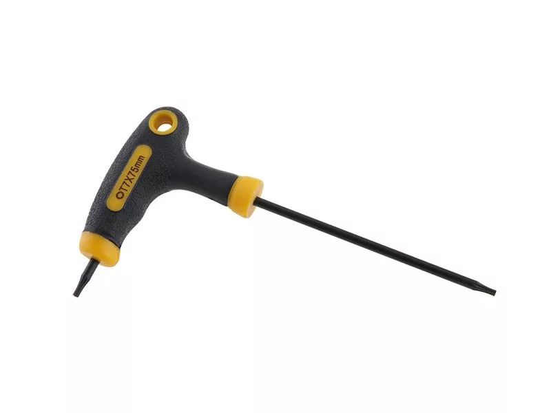 FESTA Doppelendiger Schlüsselkopf - TORX Profil. Hergestellt aus CrV-Stahl. Ergonomischer T-Griff für eine komfortable und effiziente Nutzung beider Seiten des Schlüssels.