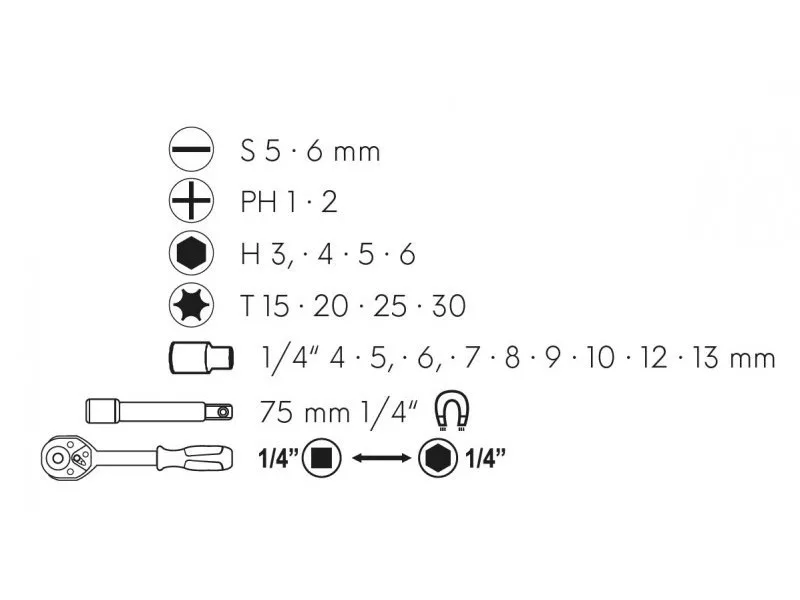 Bitspitzen- und Steckschlüsselsatz 23-teilig 1/4" magnetisch CrV