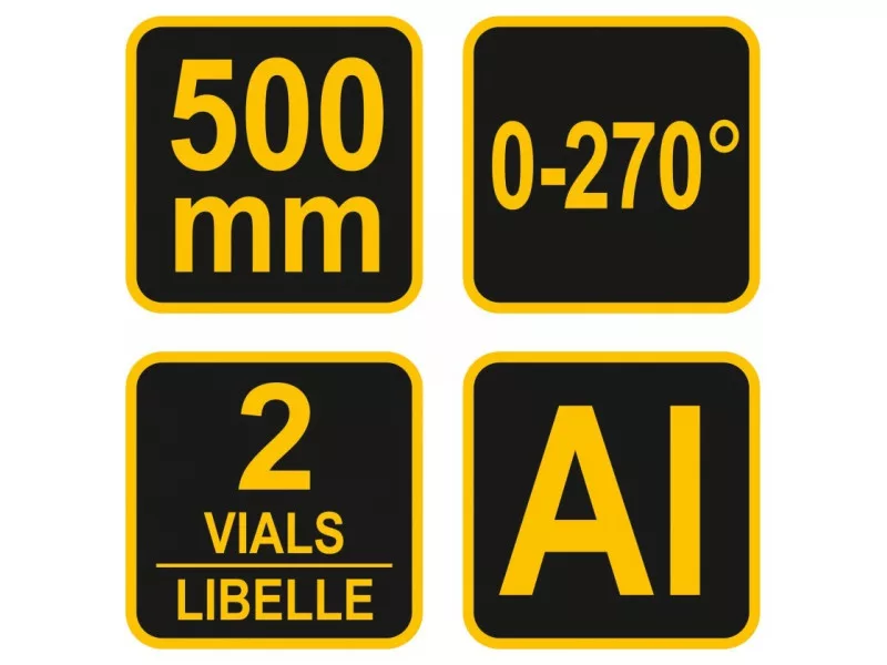 • on the inner edge of the arms a millimeter scale of 1-500 mm