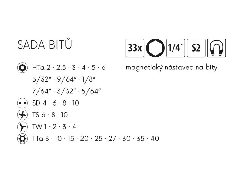 Bitkészlet 33db, S2 (5030), Hta, SD, TW, TS, Tta + mágneses bit.